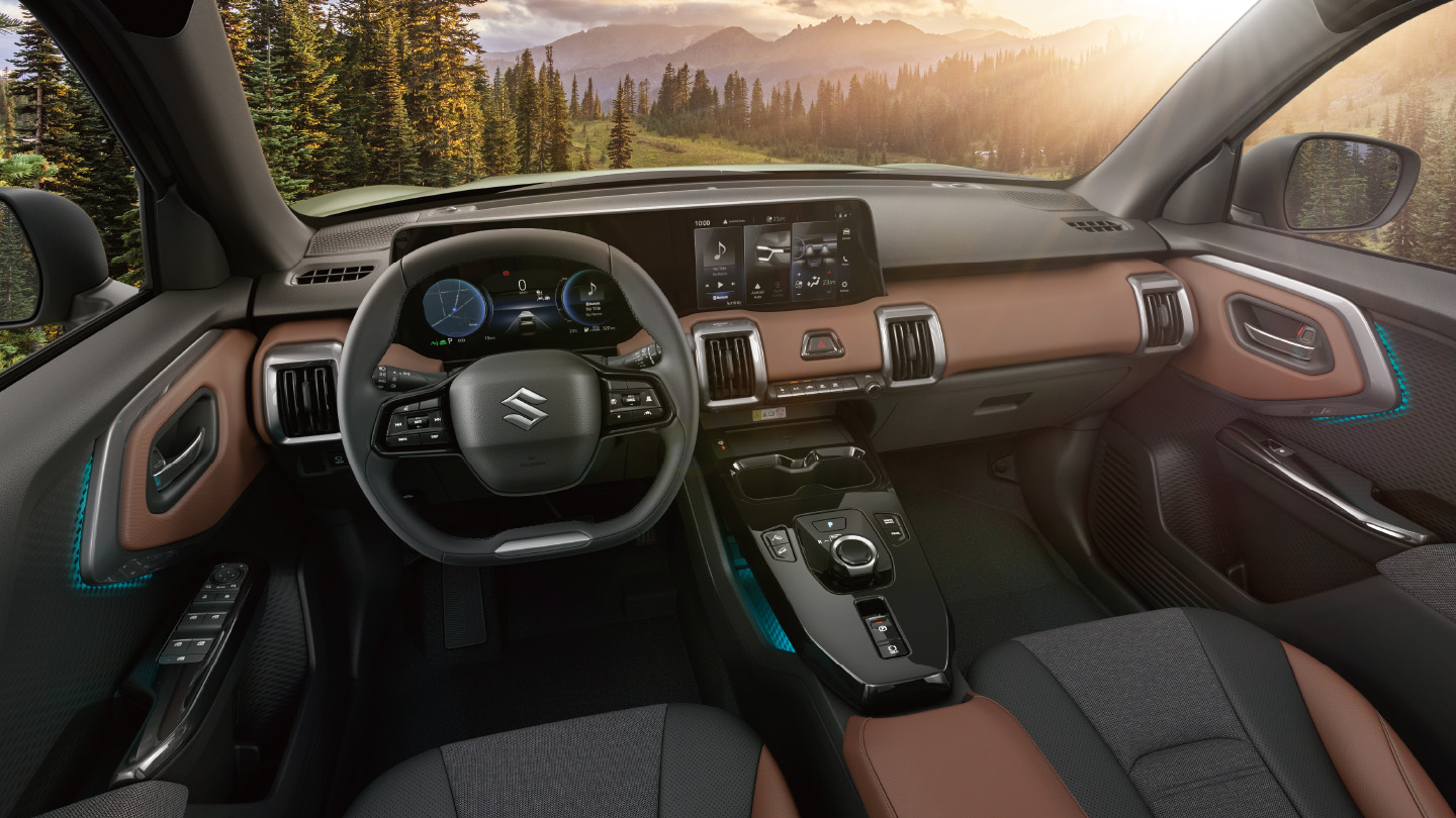 e VITARA 導入全新的整合顯示系統,將儀錶、多媒體資訊系統、空調與多項車輛功能統整在一個介面中,並能隨自己需求自訂顯示。