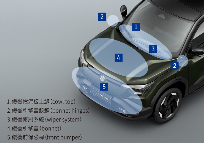 e VITARA 採用全新開發EV 動力系統,提供動能隨傳隨到的駕馭體驗。透過eAxle電動驅動軸將電動馬達、逆變器和變速箱整合成緊湊型電動驅動單元,實現了體積小、高效率、高扭矩等特性,2WD 版本配置前軸eAxle單馬達前驅,4WD 版本則為前後 eAxle雙馬達四驅。動力由磷酸鐵鋰電池模組(LFP)供應,為一種安全、穩定且高效的電能方案,電池採液冷熱管理與多重過熱/短路保護,並持續監控電池電壓,穩定性極為優異。