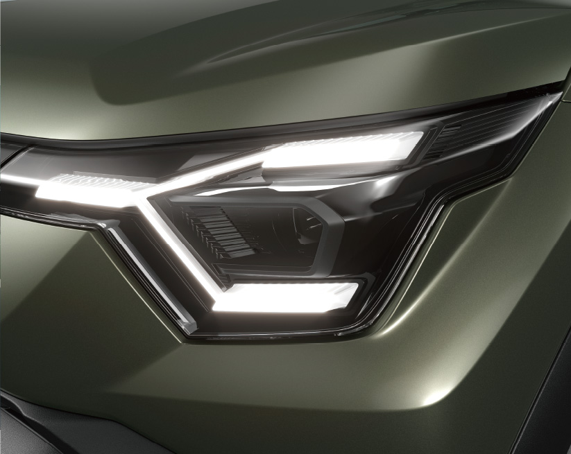 造型靈感源自「金屬猛獸」,以「High-Tech & Adventure」為設計主軸,在純電休旅的科技外觀下,潛藏著強大力量與越野性能。封閉式的車頭搭配Y型LED頭燈;硬朗的腰線和立體化輪拱結構強調肌肉感;利用黑色飾件與雙色車頂打造出懸浮式視覺效果;最後以C型尾燈作結,整體造型簡練又極具未來感。