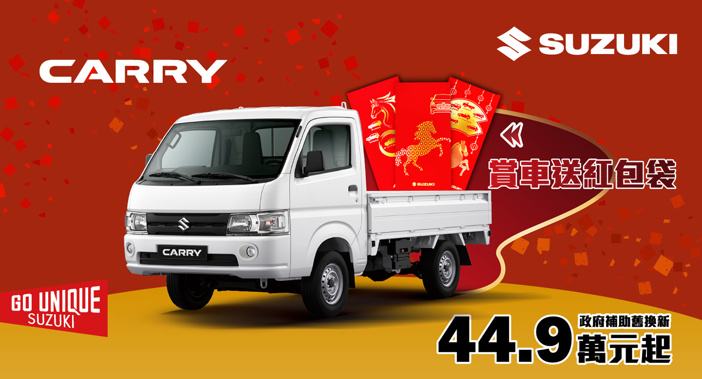 CARRY 長年在台灣市場受到職人肯定,不僅擁有強勁耐用的底盤設計,搭配高實用性的貨台與 SUZUKI 一貫的品質保證,是您事業上的得力夥伴。