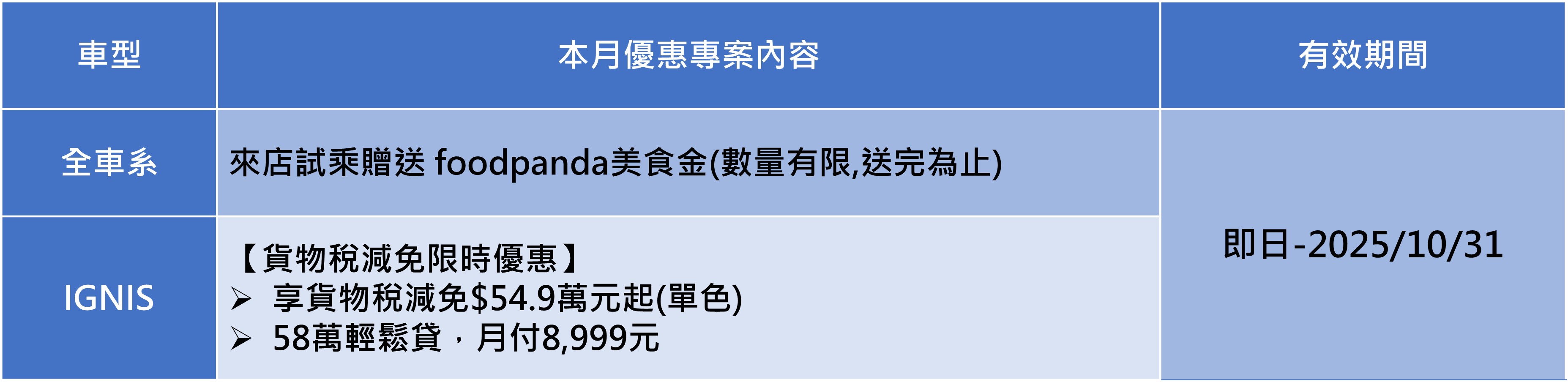 本月加碼試乘IGNIS贈 foodpanada美食金